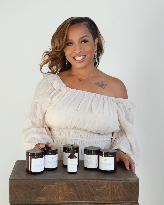 After much research, I was able to create a variety of natural blends that cured diaper rash, rejuvenated the skin, and nourished the hair. And since nothing brings me more joy than sharing my creativity with others, I began sharing my products with family and friends. They couldn’t get enough! This is how Tender Body Care came to be.